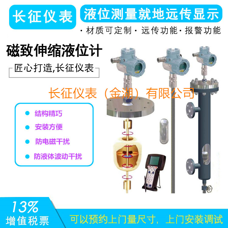 磁致伸縮液位傳感器是采用磁致伸縮原理制造的高精度、超長行程絕對位置測量傳感器。該產(chǎn)品由脈沖電路、波導(dǎo)線、回波信號單元、結(jié)構(gòu)件和保護套管組成,不但可以測量運動物體的直線位移,而且可以給出運動物體的位移和速度模擬信號。
