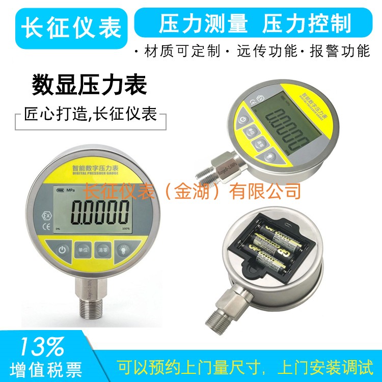 數顯壓力表又稱數字壓力表,內置壓力傳感器,是集壓力測量、顯示一體的高精度壓力表,具有抗震動、顯示精度高、穩定性高、可清零、自動待機等特點。該系列數字壓力表采用電池供電,由于采用了低功耗的處理器芯片,續航時間長,具有自動待機與一鍵清零功能。